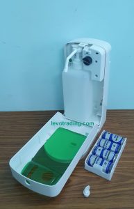 Không cần chạm tay, thiết bị có thể tự động nhận diện tay bạn và bơm ra dung dịch xà bông rửa tay hoặc dung dịch rửa tay gốc cồn theo định lượng cài đặt trước.