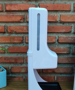 Máy có kích thước 119 x 135 x 425 mm (D x R x C). Có thiết kế khay hứng dung dịch phía dưới, tiện gắn lên tường hoặc lắp lên chân kệ gắn máy xịt cồn.