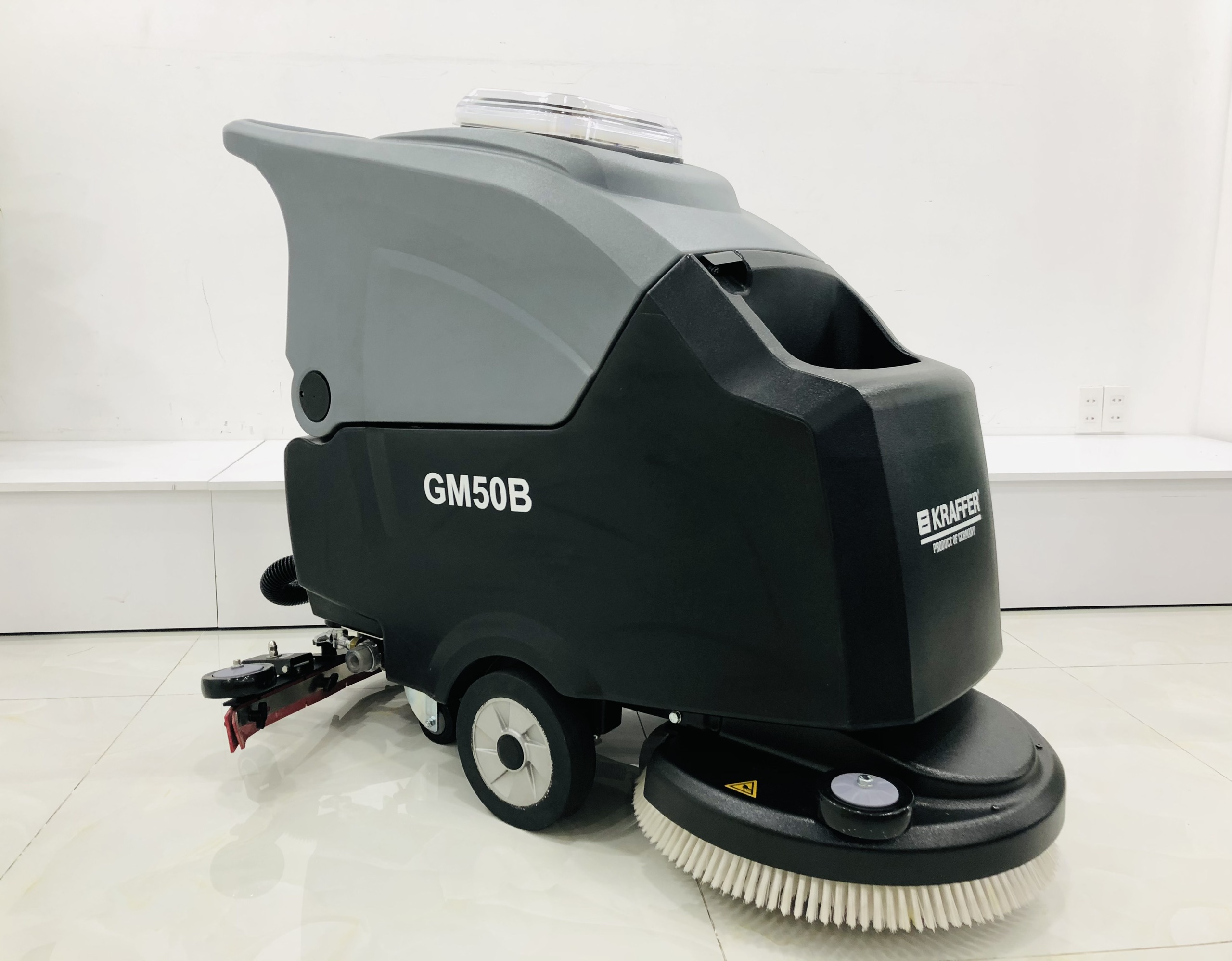 Kraffer GM50B là dòng máy chà sàn liên hợp thế hệ mới, tích hợp chức năng: chà sàn và hút nước bẩn cùng lúc.